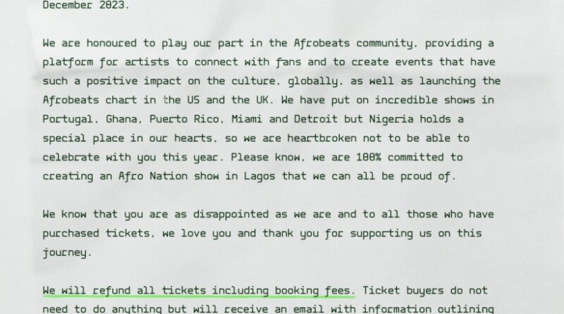 Afro Nation Nigeria 2023 cancelled