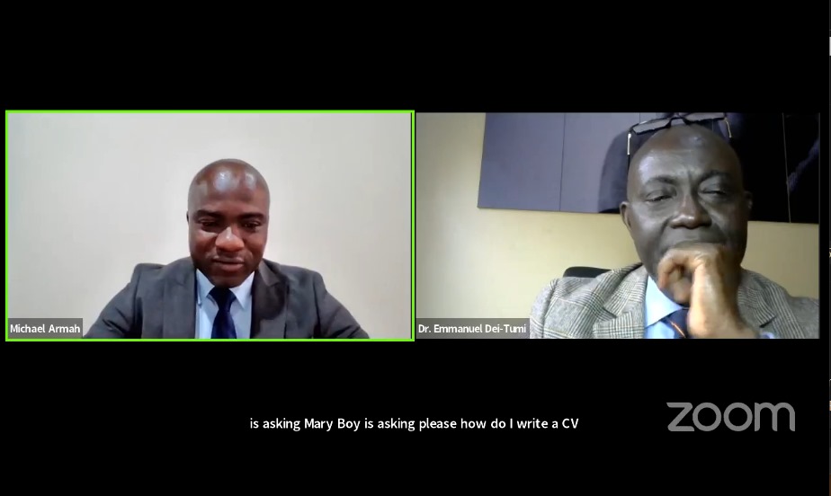 The webinar’s main speaker, Dr. Emmanuel Dei-Tumi, a renowned leadership strategist, took center stage and gave a spectacular presentation. His insights and engaging delivery encouraged and prepared participants to face the challenges of the job market. Dr. Dei-Tumi’s talk covered CV creation and optimization, successful job search techniques, interview preparation, personal branding, and networking. He also discussed the benefits and processes of becoming self-employed, and awakening the entrepreneurial spirit in the audience.