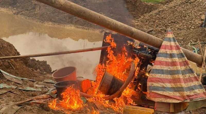 In addition, heavy-duty water pumping machines, mining equipment and makeshift structures found at the site were destroyed, while key excavator parts were removed to immobilise other machines left behind.