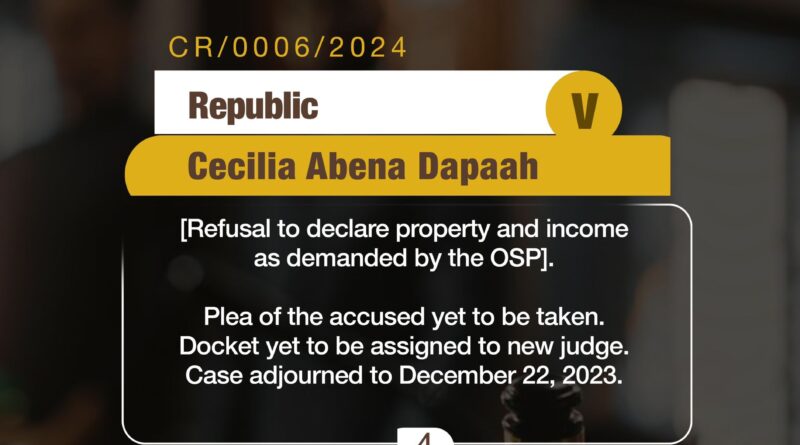 For the Cecilia Dapaah’s case, the OSP said the plea of the accused was yet to be taken.