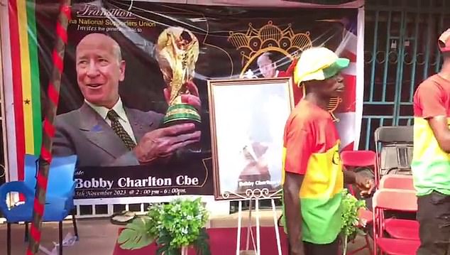 Ghanaian supporters group hold a funeral for Sir Bobby Charlton over 4,000 MILES away from Manchester farewell… as organizer reveals personal reason for paying homage to the Man United and England legend