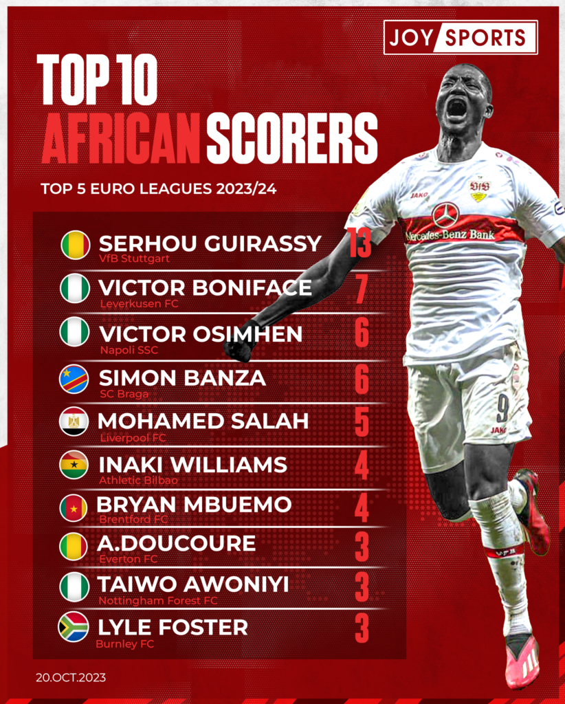 The 2023/24 season, however, has started with a shift, with the Bundesliga leading the way for Africa’s top scorers in the top five leagues.